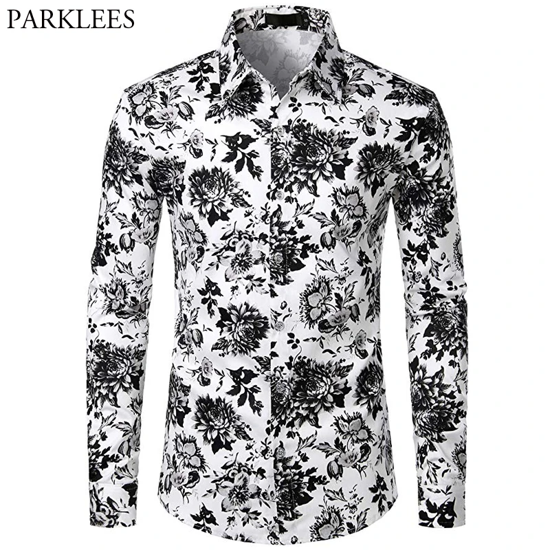 Black And White Floral Men Shirt Casual Slim Fit Flowers Shirts For Men Fashion Elegant Mens Shirts Long Sleeve Camisas Hombre Shirts Aliexpress