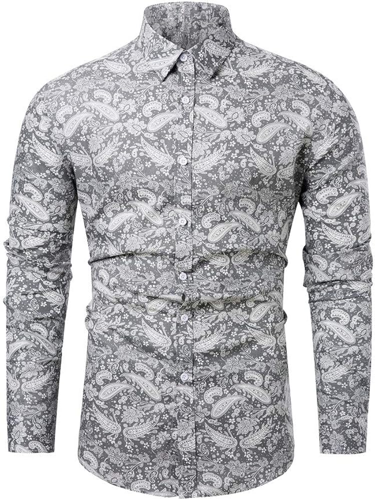 Men Wulful Mens Floral Dress Shirt Causal Long Sleeve Paisley Flower Party Printed Button Down Shirts Foretadrenaline Com